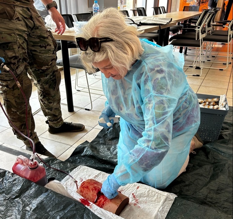 Zdjęcie z warsztatów ratowniczych - część praktyczna, reagowanie na krwotok