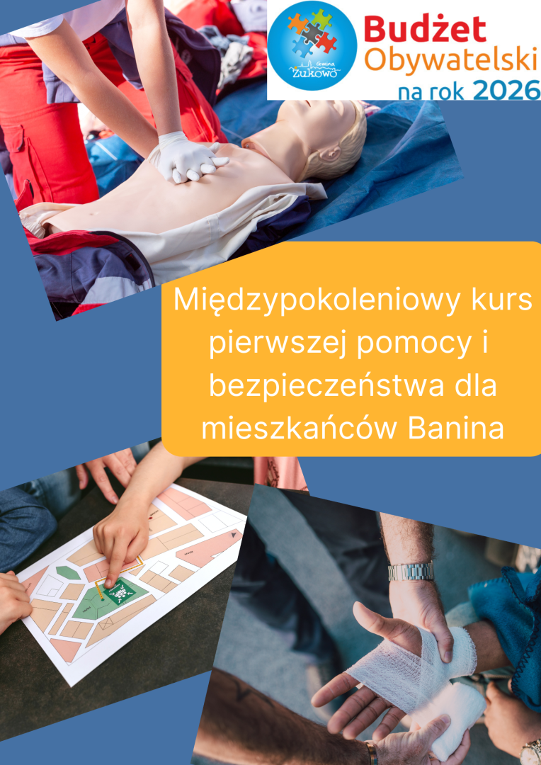 Celem projektu "Międzypokoleniowe warsztaty z pierwszej pomocy i zasad bezpieczeństwa" jest podniesienie wiedzy i umiejętności mieszkańców Banina w zakresie udzielania pierwszej pomocy przedmedycznej. Nauka właściwego reagowania w sytuacjach zagrożenia (np. wypadek, zasłabnięcie, pożar, zagrożenia w przestrzeni publicznej) powiązana z integracja międzypokoleniową poprzez wspólną naukę i ćwiczenia praktyczne dzieci, młodzieży, dorosłych i seniorów. Przewiduje się, że szkoleniami zainteresowani by było ok 200 osób w całym cyklu spotkań. Możliwe by były zapisy max 50 osób na jedno spotkanie. Spotkanie odbywałoby się w formule 60 min wykład, 60 min ćwiczenia w grupach.