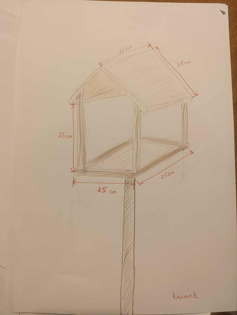 szkic z wymiarami karmnika